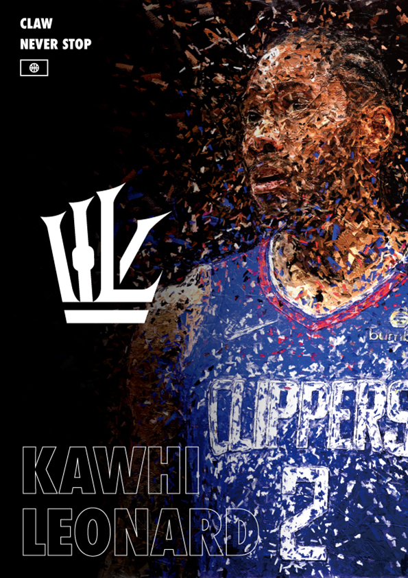 彼の代名詞といえば、そのあだ名通りの『クロー・爪』手が驚くほど大きいことで有名。名将ポポビッチに鍛えられたその能力は万能。さらに一年在籍したラプターズでは優勝請負人としてチームに初の栄冠をもたらす。クリッパーズに移籍した彼はまたもチームに栄冠をもたらす存在になるのか? そんな彼のイニシャル『K・L』と『冠』、また『チャンピオンリング』をイメージした形を組み合わせ、『クロー』を表現してみました。